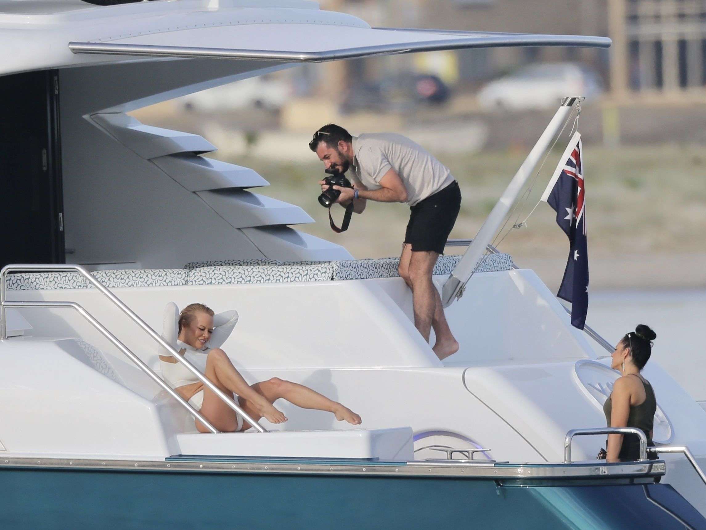 Attached to: Pamela Anderson in White Swimsuit for a Photoshoot on the Gold Coast