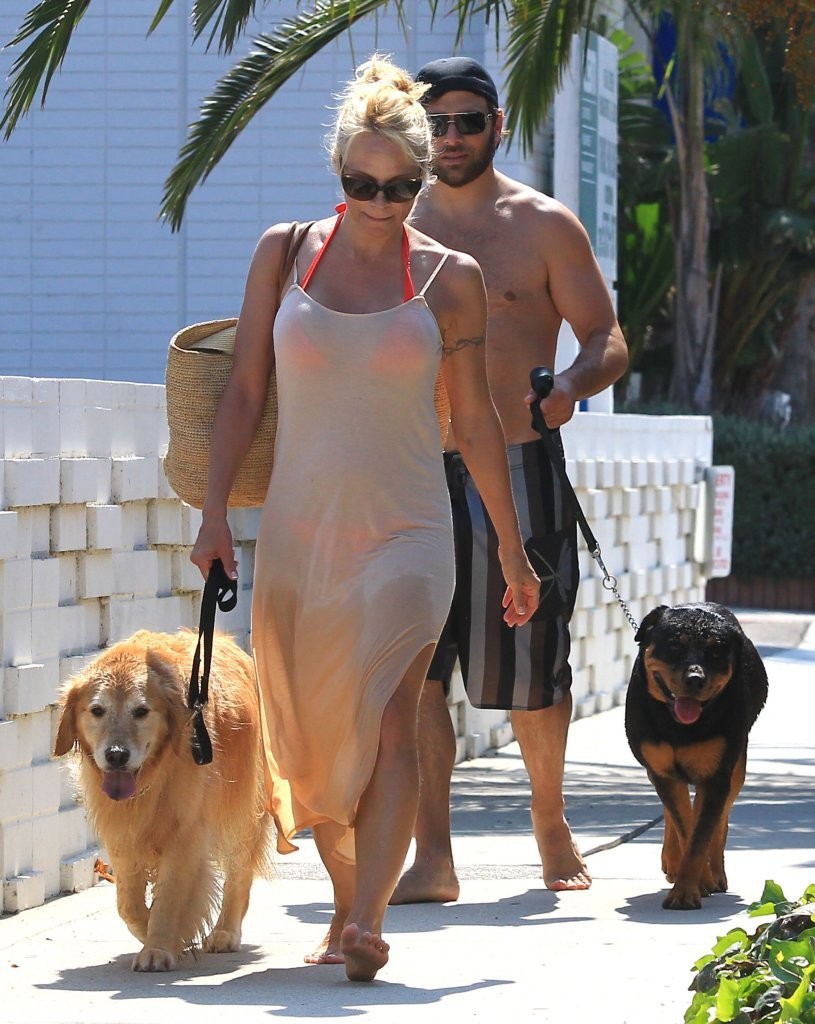 Pamela Anderson Walking her Dogs in Malibu