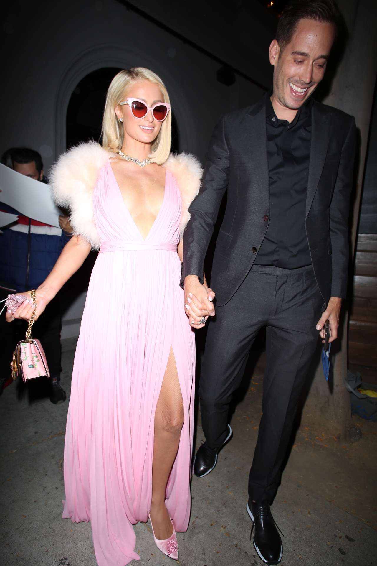 West Hollywood, CA – Paris Hilton and fiance Carter Reum depart after dinner at Craig’s Restaurant in a gorgeous pink gown by Valentino.