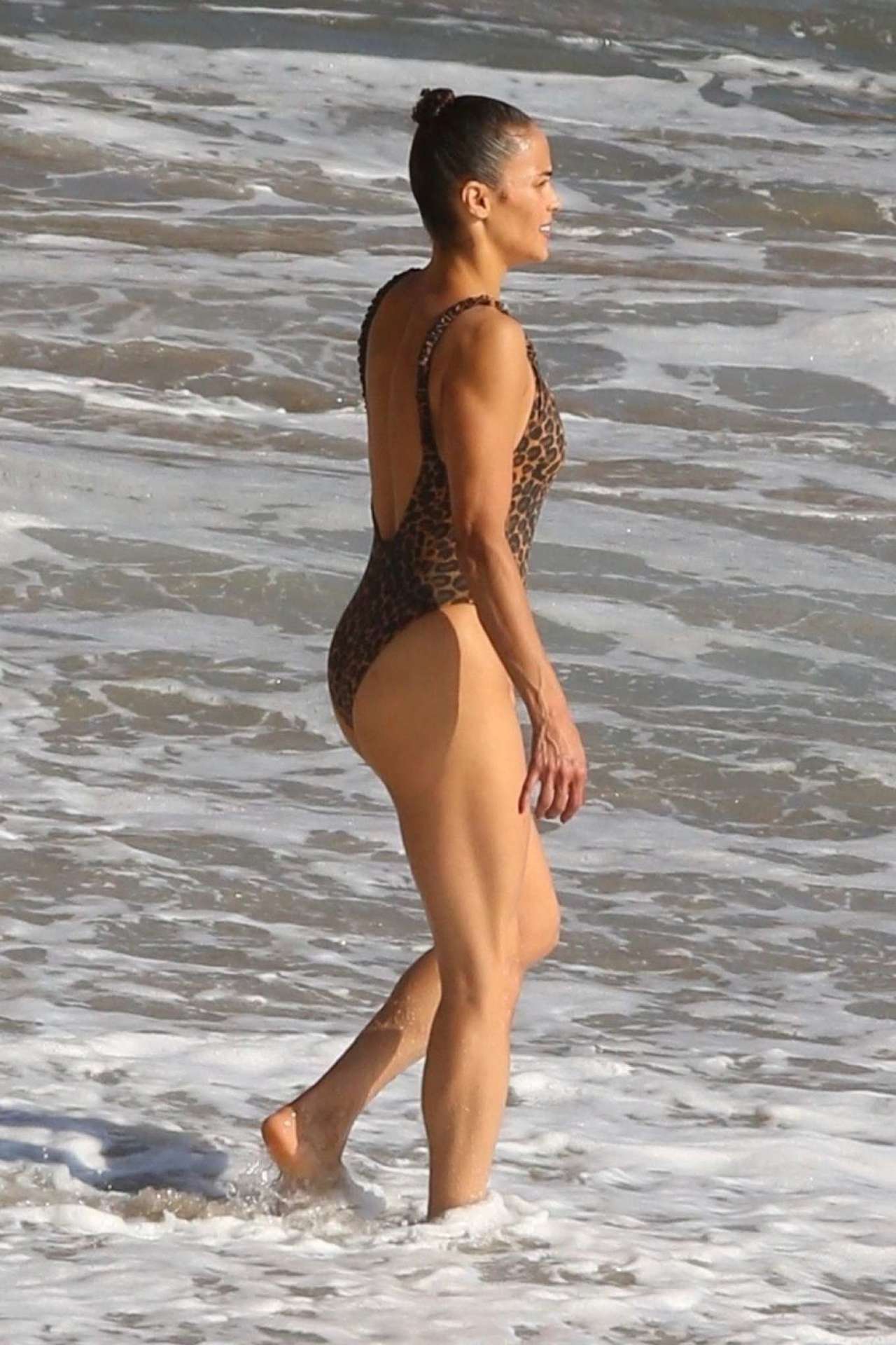 Paula Patton in Leopard Print Swimsuit on Malibu Beach