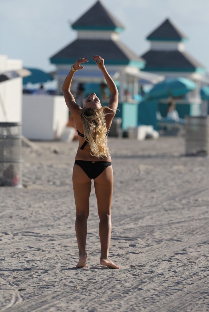 Attached to: Petra Benova in Black Bikini at the Beach in Miami