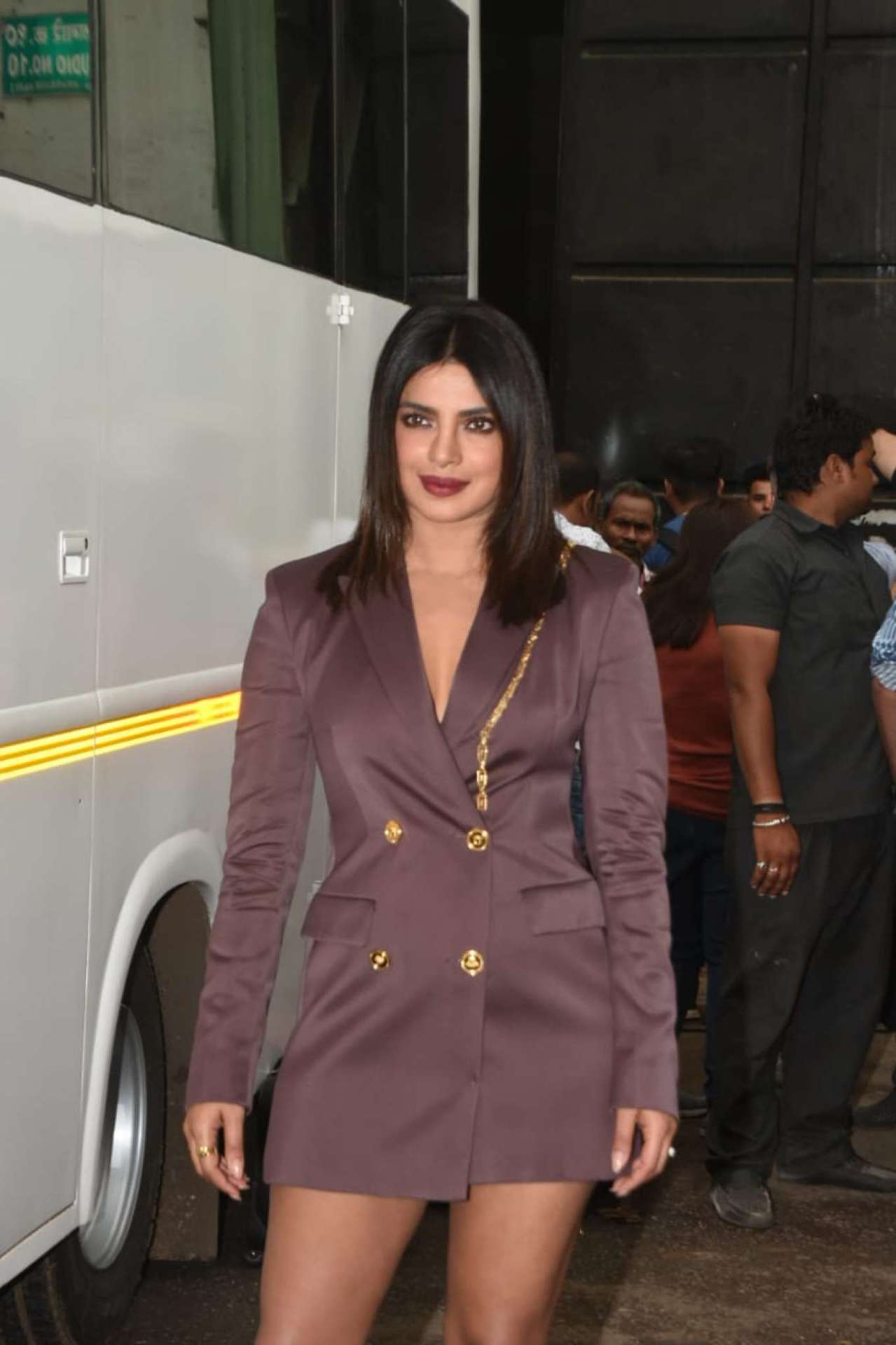 Priyanka Chopra Leggy Outside the Set of a New Movie