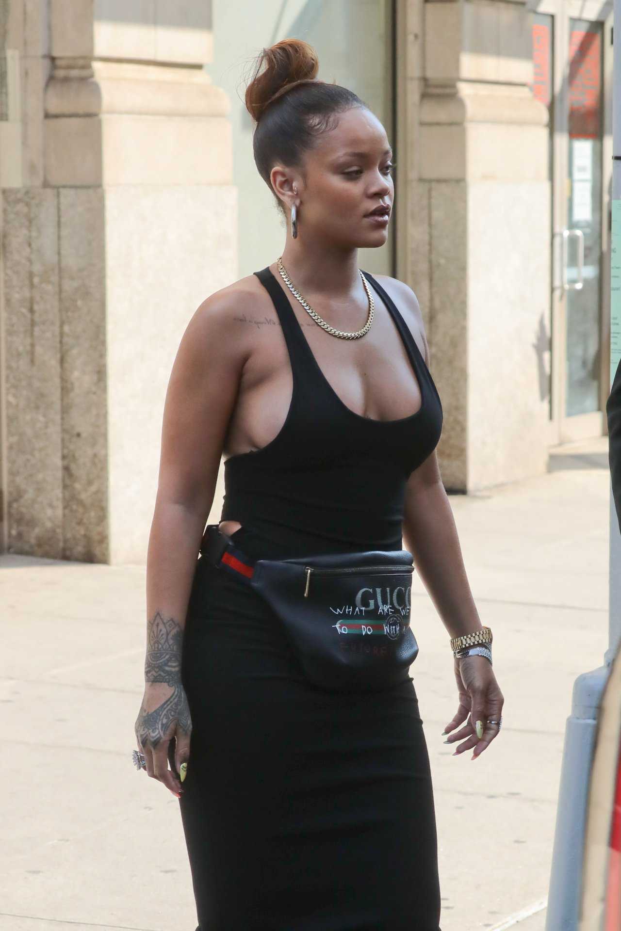 Rihanna Braless Out and About in New York