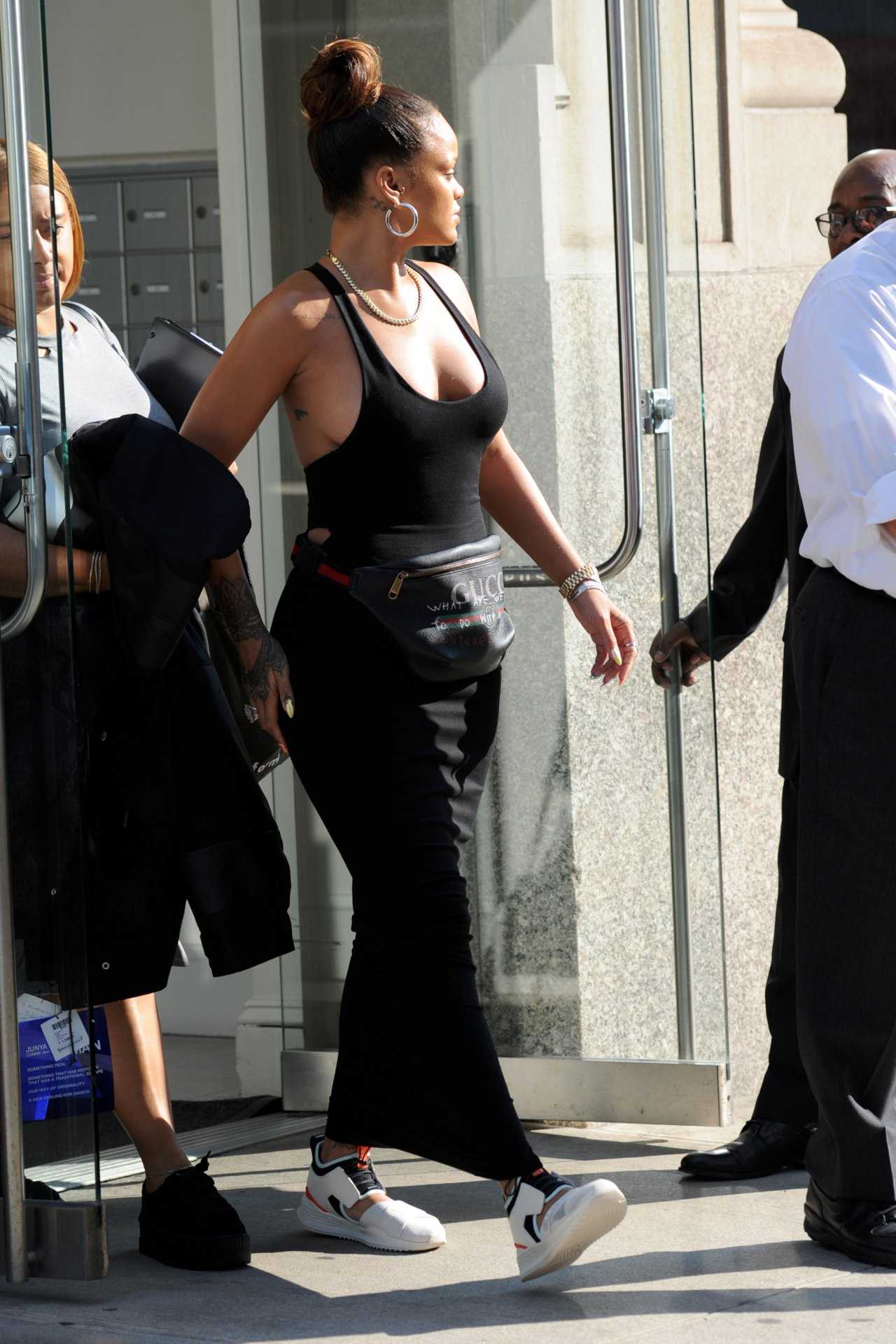Rihanna Braless Out and About in New York