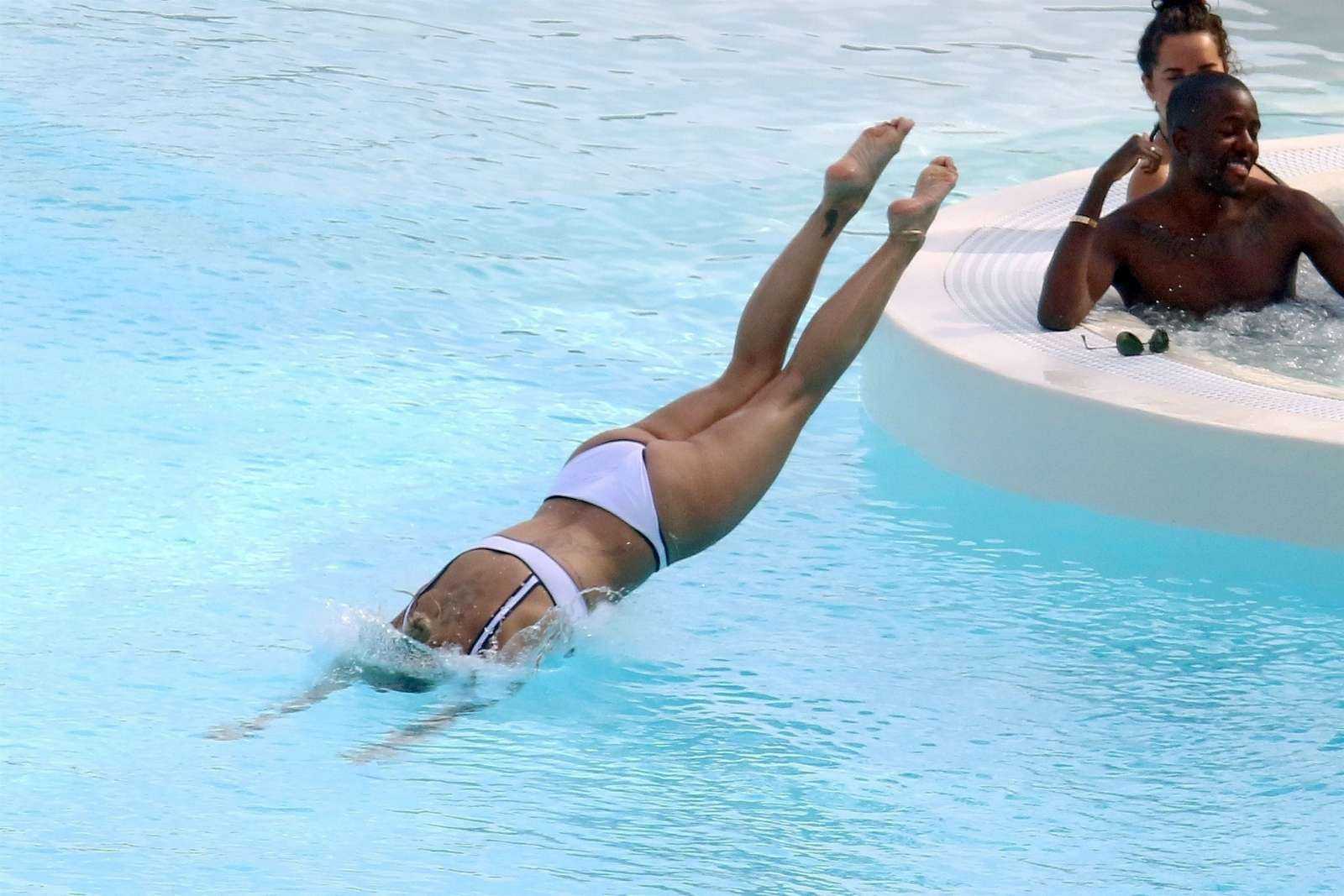 Attached to: Rita Ora Booty in White Bikini at a Pool in the French Riviera