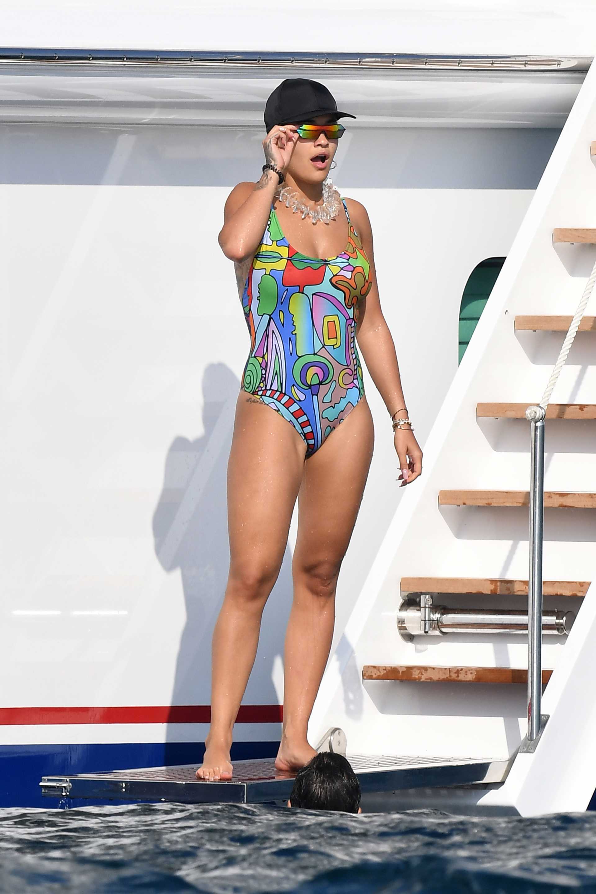 Rita Ora in Swimsuit on a Yacht in Porto Cervo