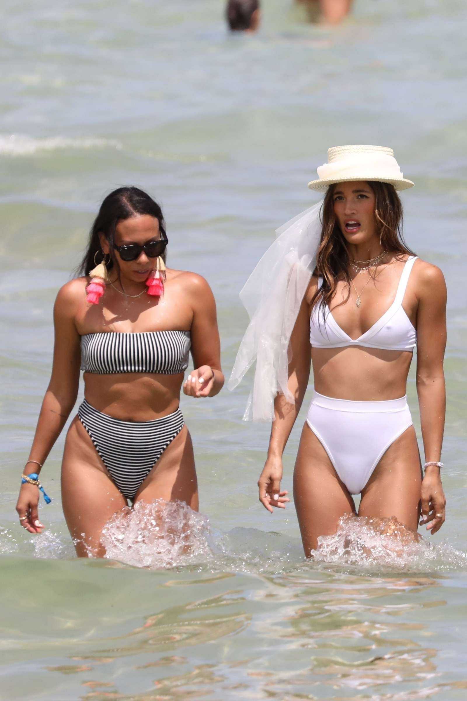 Rocky Barnes in White Bikini for Photoshoot at the Beach in Miami