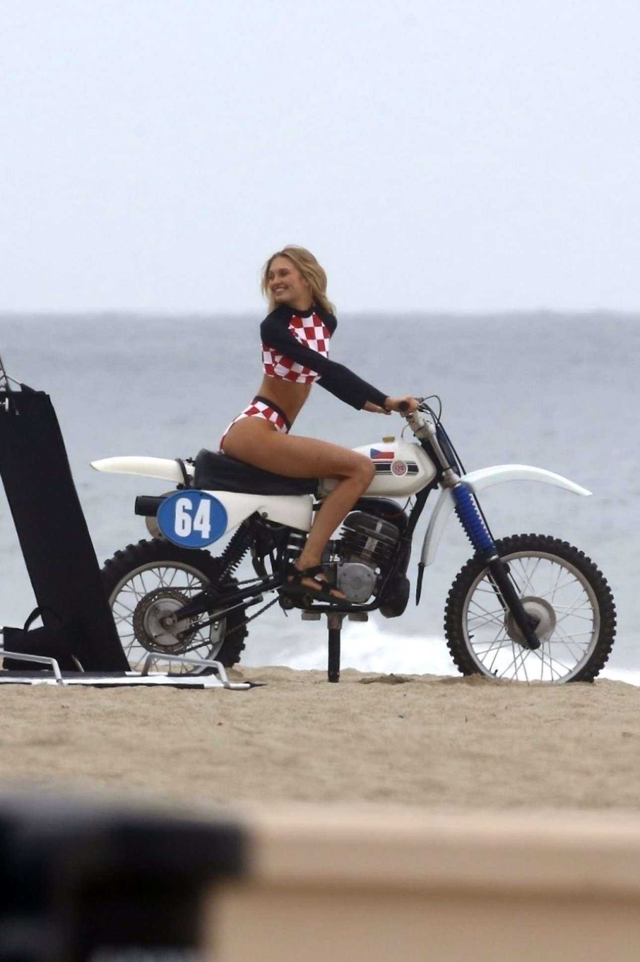 Romee Strijd in Swimsuit on Bike at the Beach in Malibu