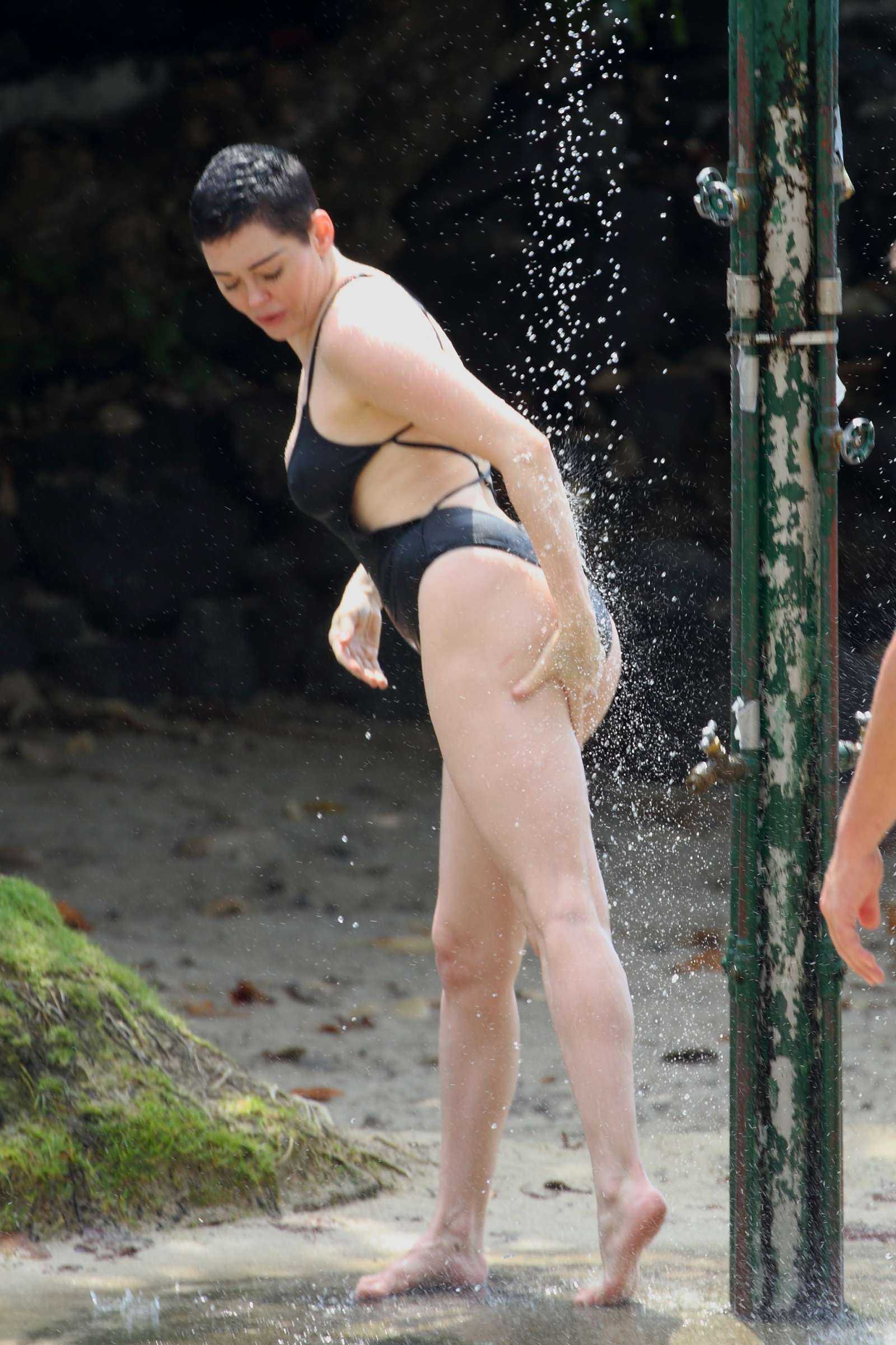 Rose McGowan in Black Swimsuit at a Beach in Hawaii