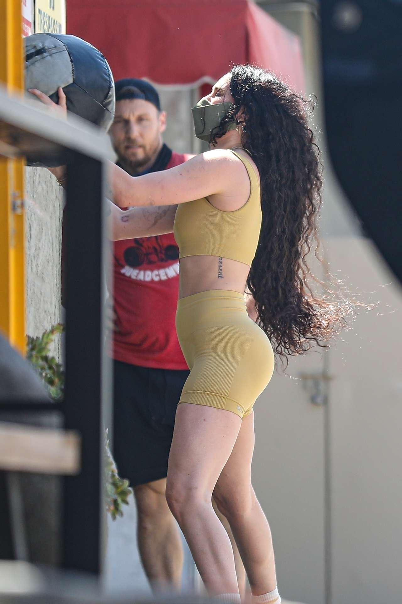 BGUK_2102634 – West Hollywood, CA – *EXCLUSIVE* Rumer Willis gets a hardy workout exercising with her trainer using a medicine ball at Rise Nation gym in West Hollywood.