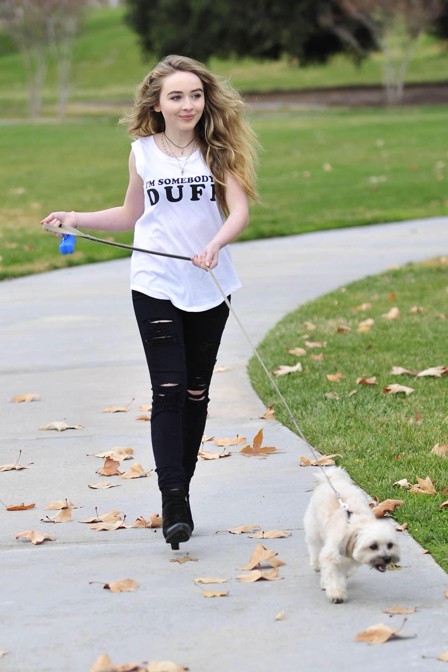 Sabrina Carpenter Walking her Dog in Burbank