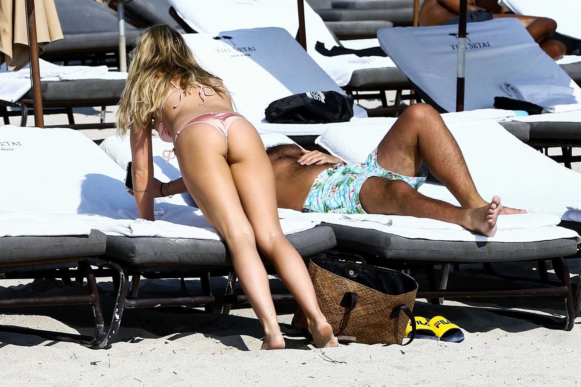 Samantha Hoopes in a Pink Bikini on the Beach in Miami