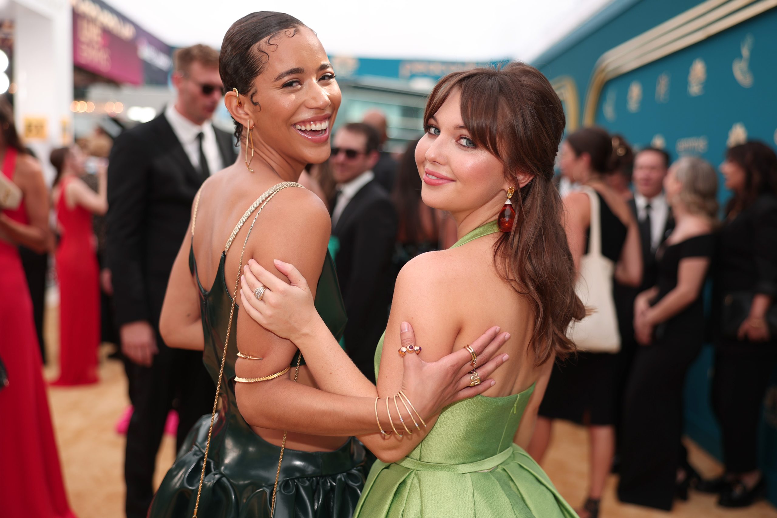 LOS ANGELES, CALIFORNIA – SEPTEMBER 12: 74th ANNUAL PRIMETIME EMMY AWARDS — Pictured: (l-r) Jasmin Savoy Brown and Sammi Hanratty arrive to the 74th Annual Primetime Emmy Awards held at the Microsoft Theater on September 12, 2022. — (Photo by Christopher Polk/NBC via Getty Images)