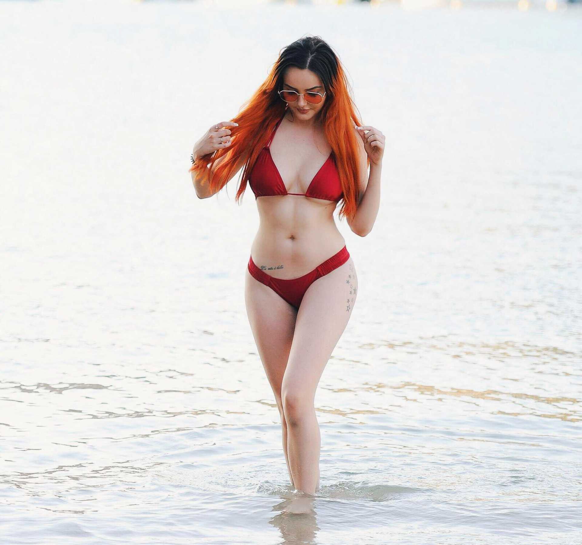 Sarah Goodhart in Red Bikini on the Beach in Tenerife