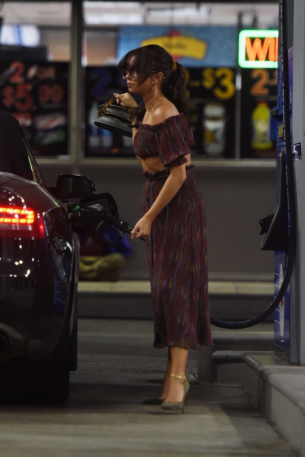 Sarah Hyland Pumping Gas after Dinner in LA