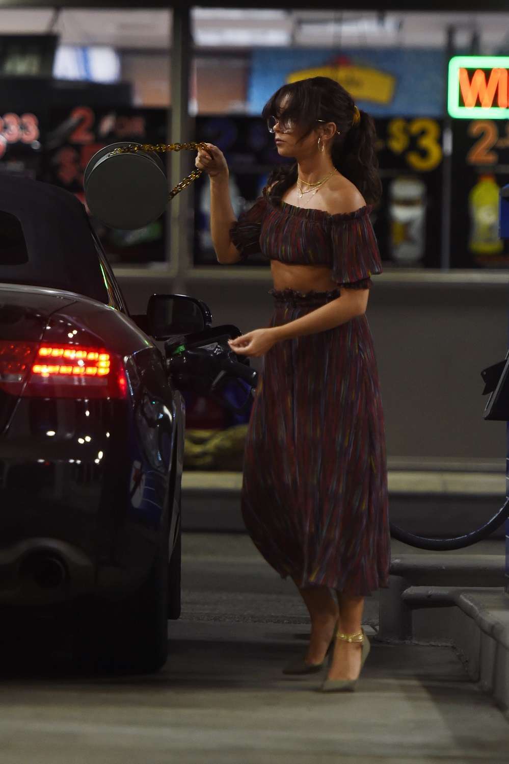 Sarah Hyland Pumping Gas after Dinner in LA
