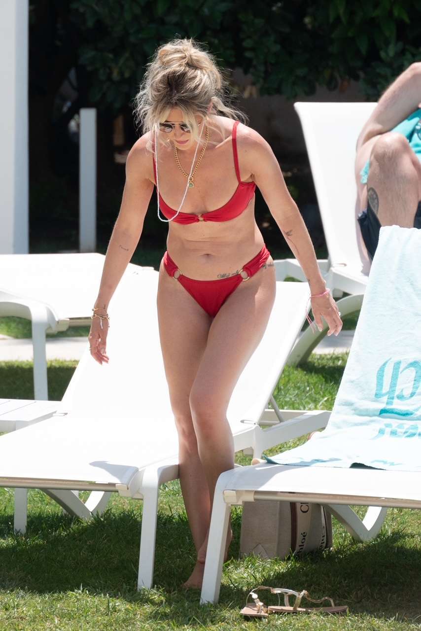 EXCLUSIVE: Sarah Jayne Dunn stuns in a red bikini poolside in Marbella, Spain