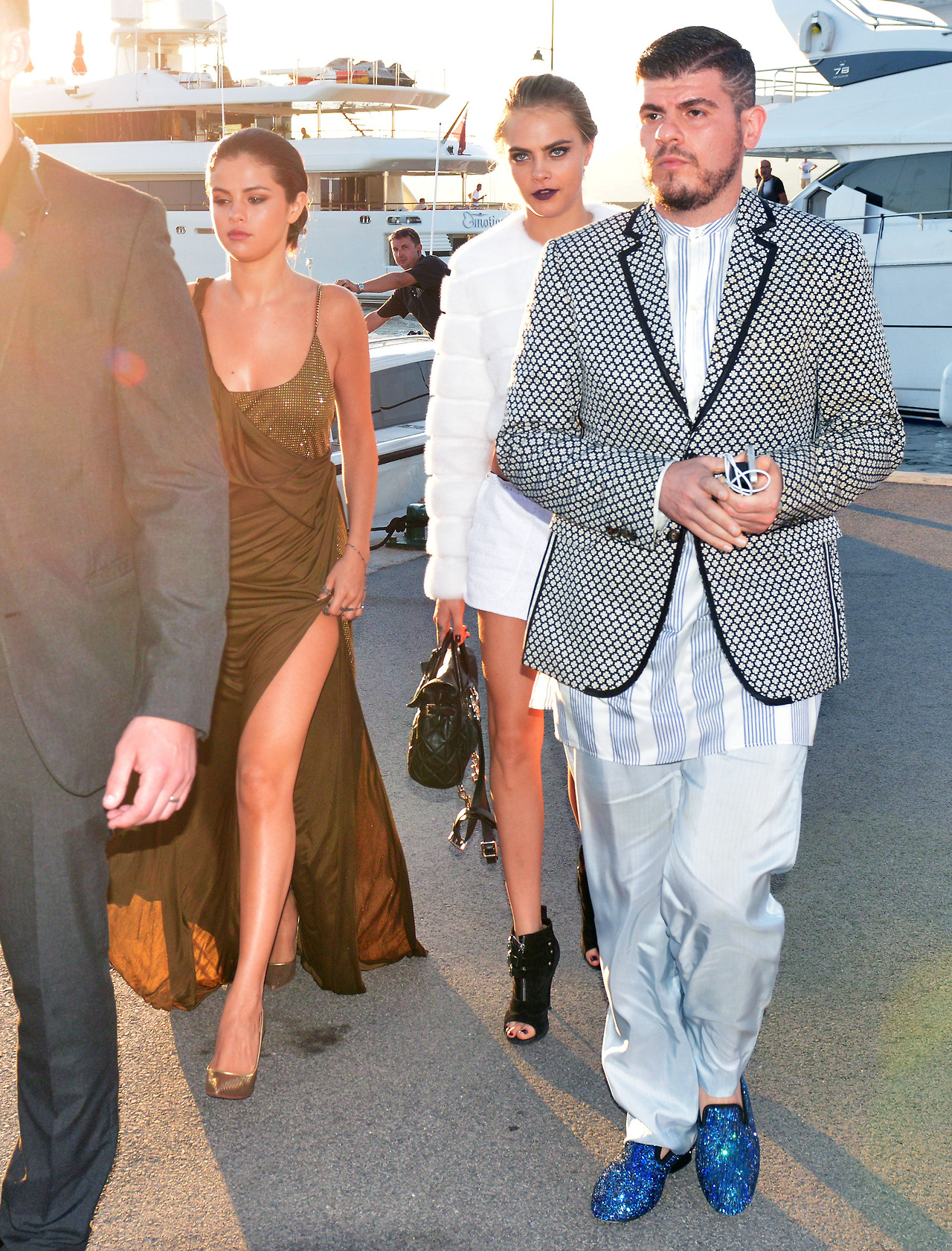 51485253 Birthday girl Selena Gomez and her gal pal Cara Delevingne are surrounded by a security team while heading to a party hosted by Leonardo DiCaprio in Saint-Tropez, France on July 23, 2014. FameFlynet, Inc – Beverly Hills, CA, USA – +1 (818) 307-4813 RESTRICTIONS APPLY: USA ONLY