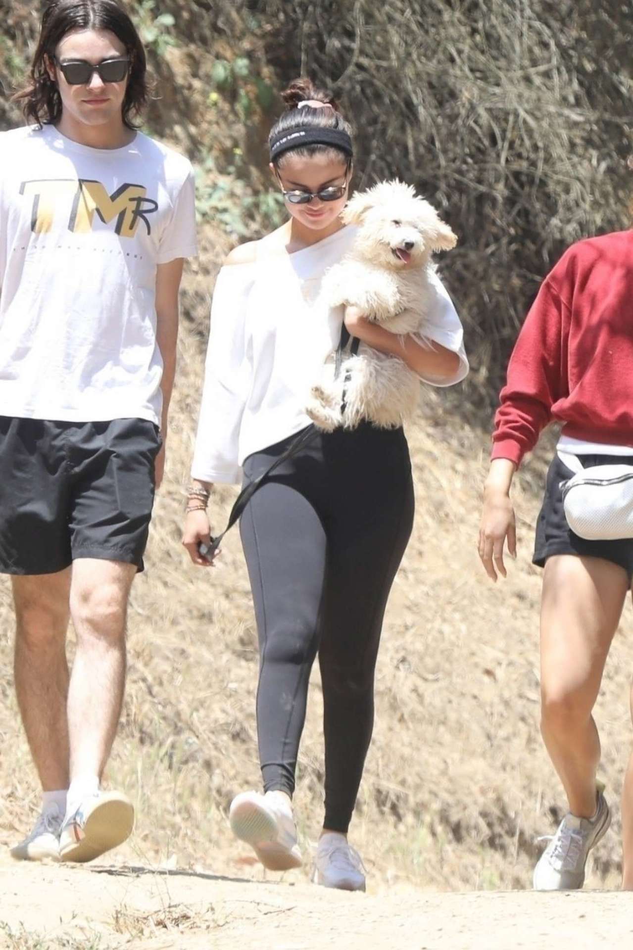 Selena Gomez Carrying a New Puppy Out for a Hike with Friends in Los Angeles