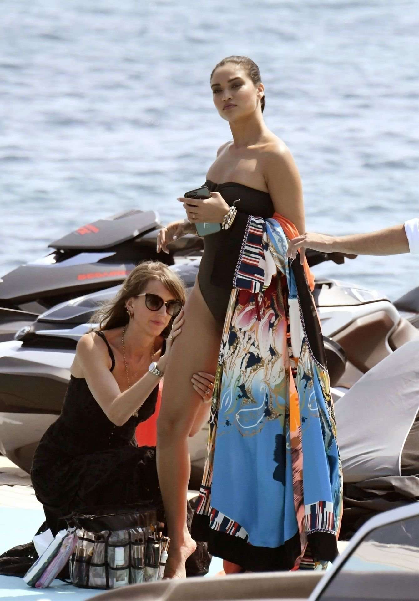 Attached to: Shanina Shaik Booty in Black Swimsuit in Mykonos