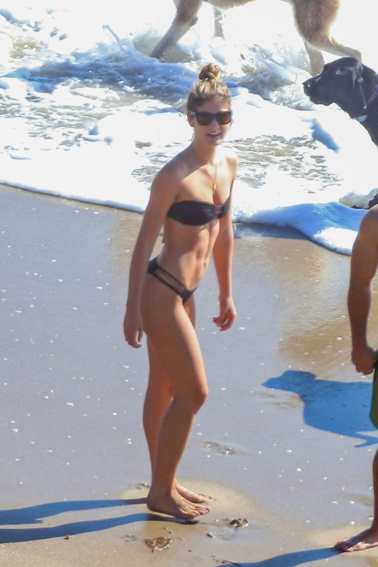 Attached to: Shauna Sexton in Black Bikini with Dogs on the Beach in Malibu