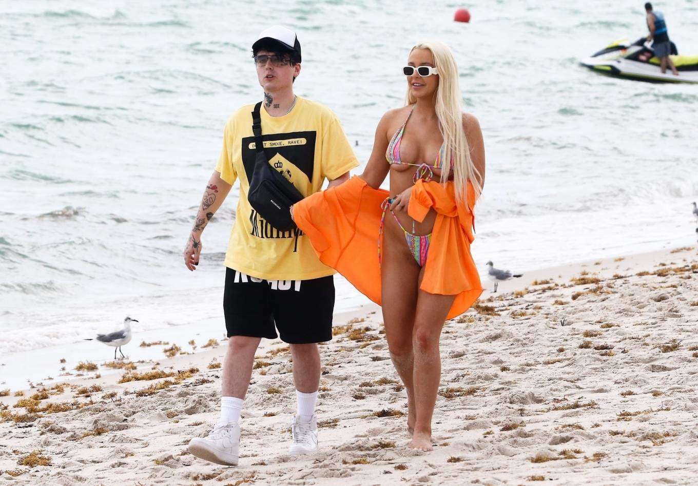Tana Mongeau Booty in a Bikini with Friends on Beach in Miami