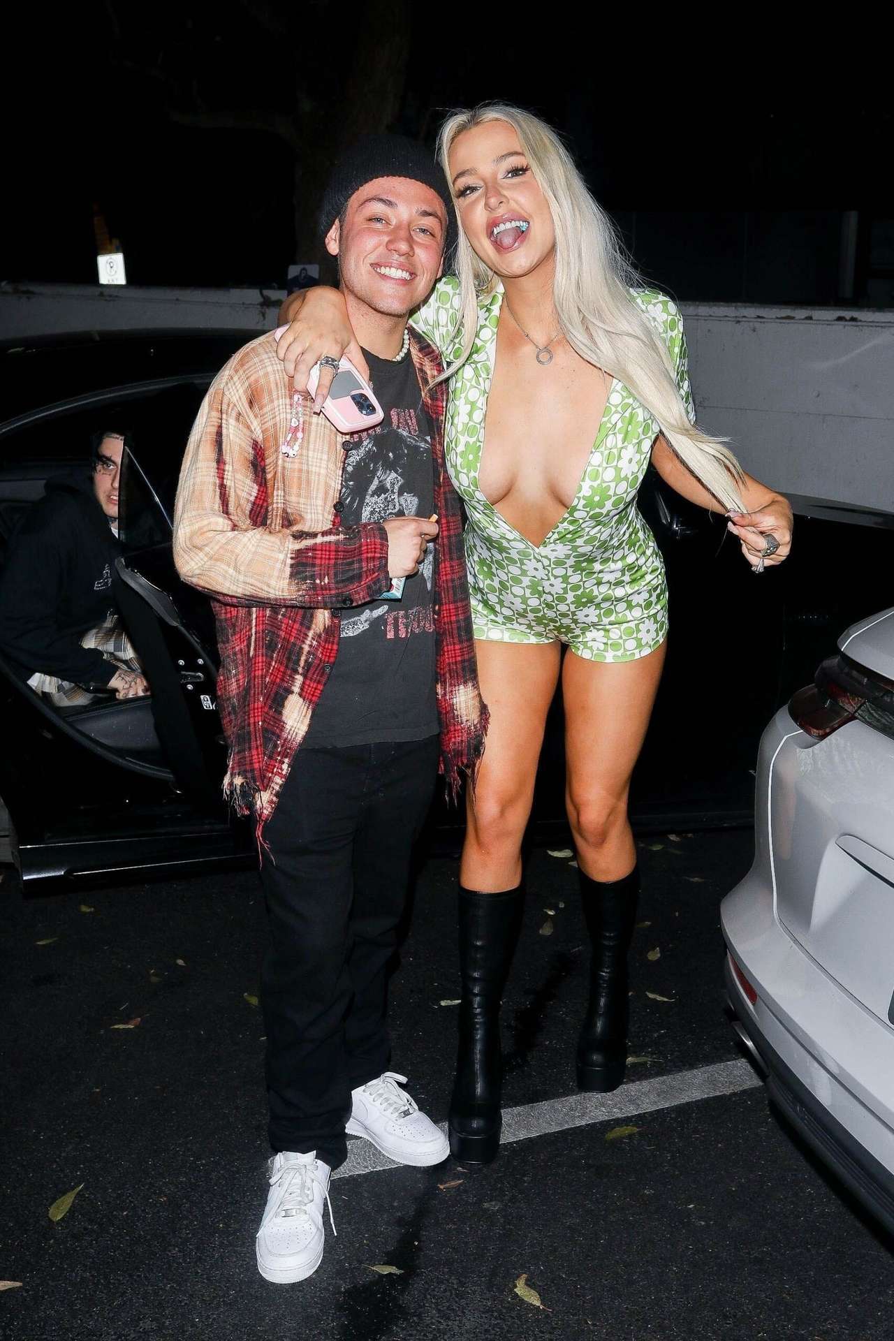 Tana Mongeau Leggy and Cleavage, Kissing Out in Los Angeles