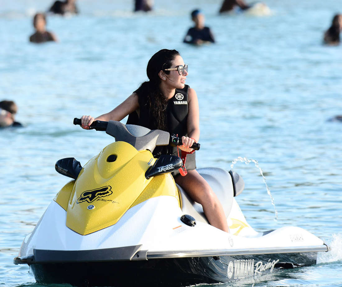 Tulisa Contostavlos in Beach Jet Skiing in Barbados
