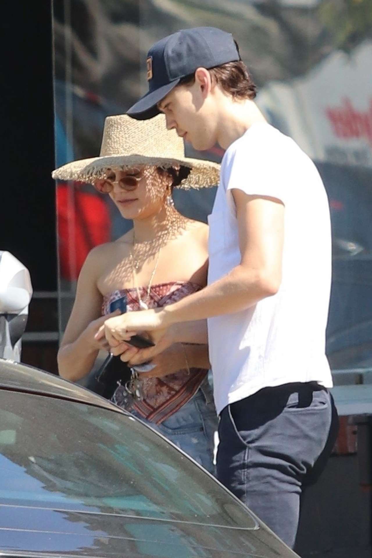 *EXCLUSIVE* Vanessa Hudgens takes on L.A. heat donning chic bandana top during lunch outing with boyfriend