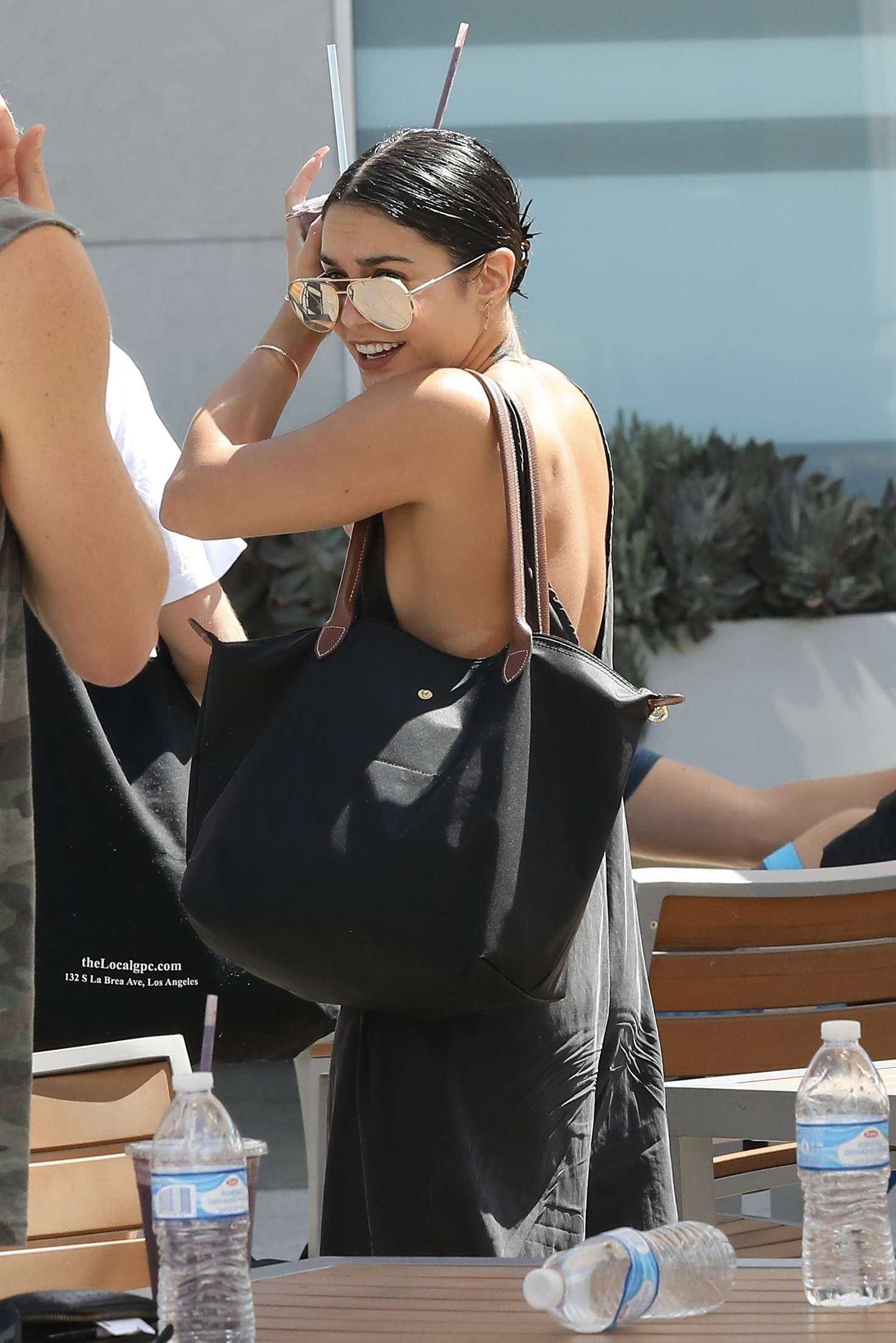 Vanessa Hudgens Sideboob in Black Dress Out in West Hollywood