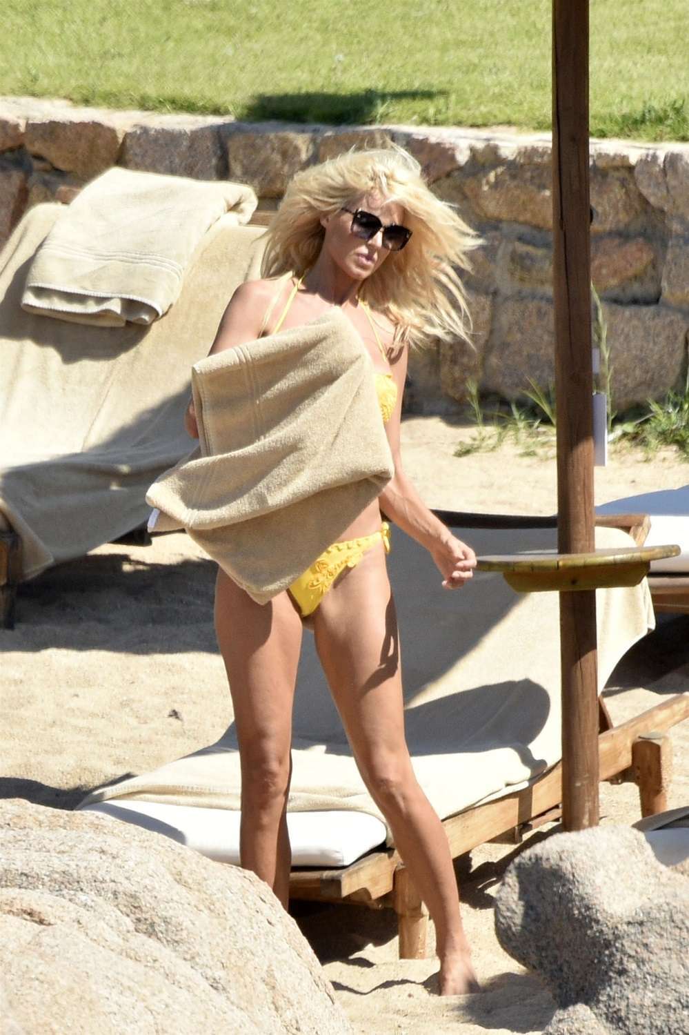 Attached to: Victoria Silvstedt in Yellow Bikini at a Beach in Sardinia
