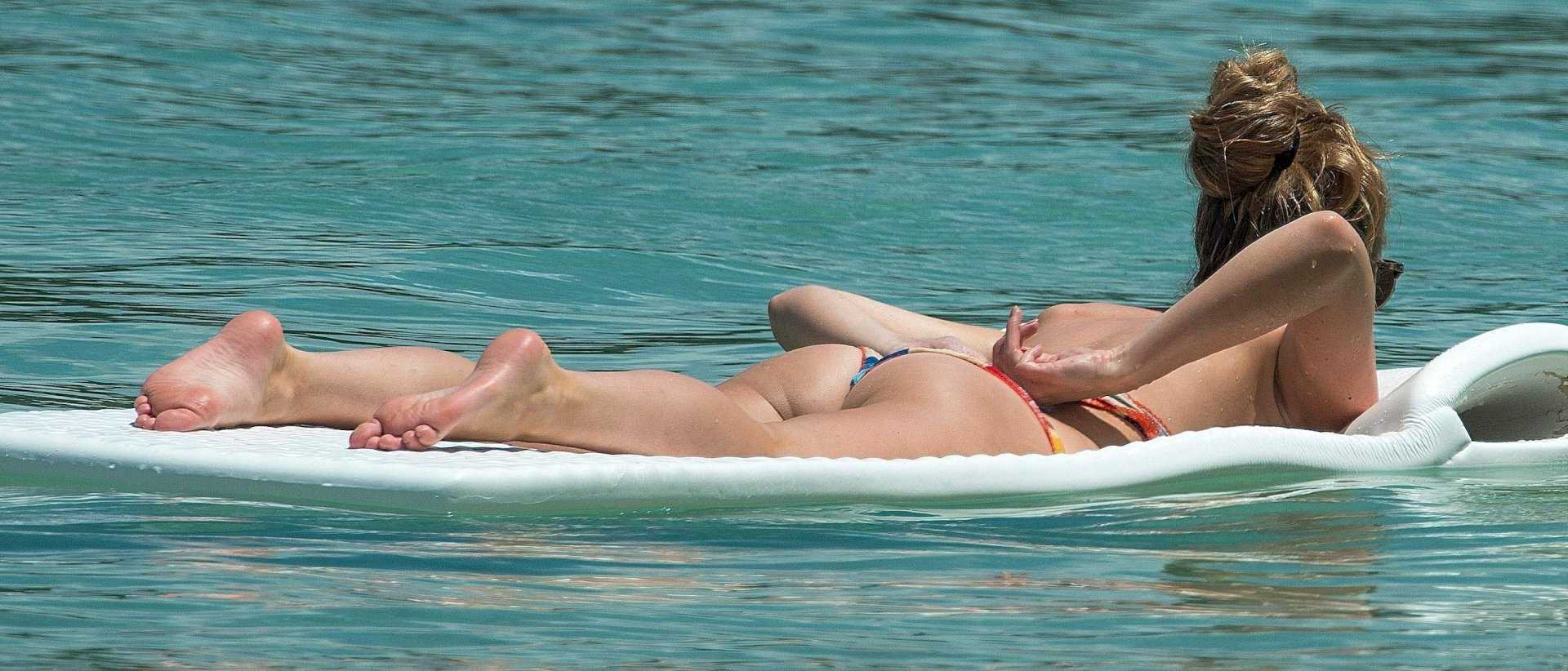 Zoe Salmon in Bikini Surfing in Barbados